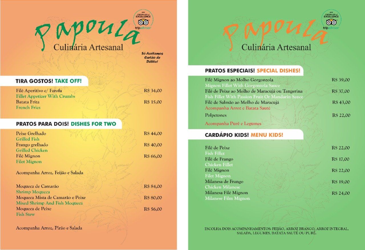- Faixa de Preço: R$ 20 – R$ 84 (Servem pratos individuais e para duas pessoas)